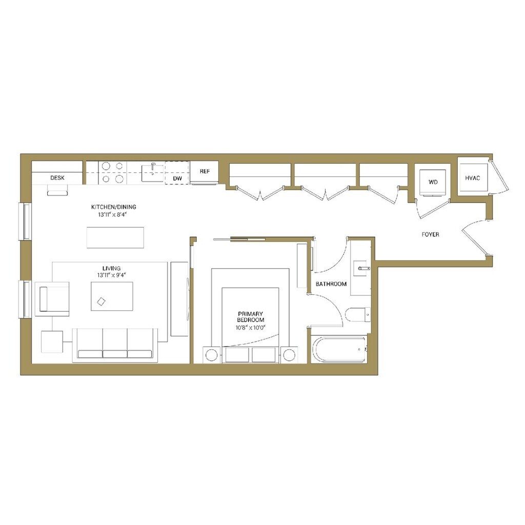 1 Dormitorio, 1 Baño, 597 pies²Disponible AhoraGalería del Modelo