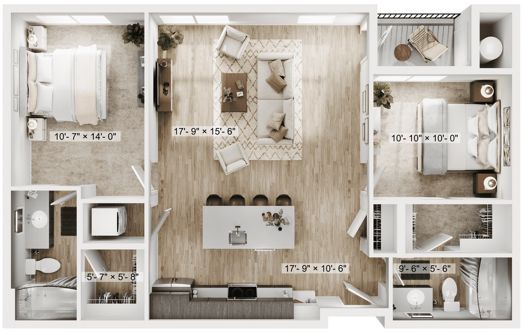 Modelo de apartamento: 2BR/2BA - B1Desde $1,8752 Dormitorios, 2 Baños, 1021 sq ftDisponible Ahora![]()