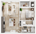 1BR/1BA - A2 - Plano 1 2 Dormitorios