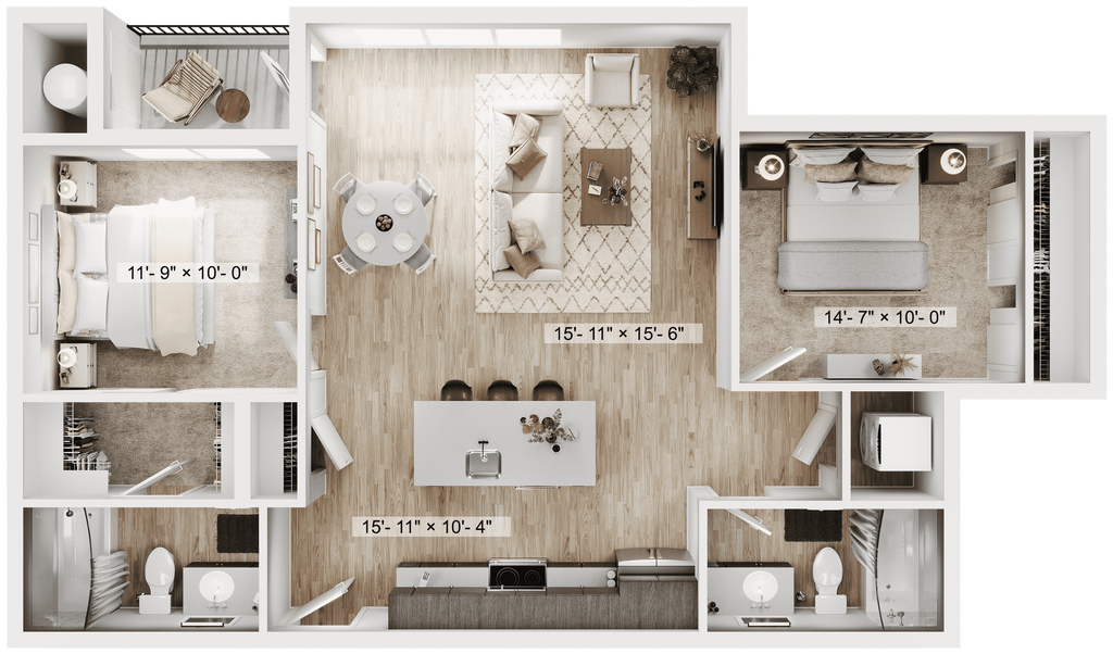 2 Dormitorios, 2 Baños, 1021 pies²Más CargosDisponible AhoraGalería del Modelo