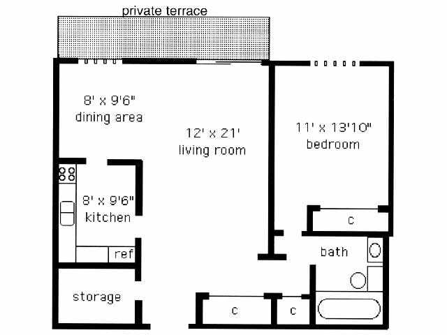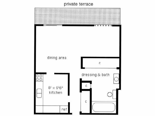 Modelo de apartamento: terrace studioEstudio, 1 Baño, 505-525 sq ftNo Disponible![]()