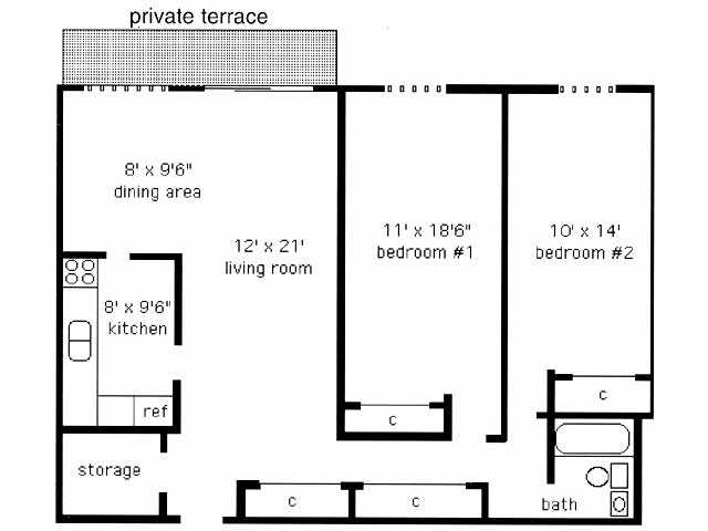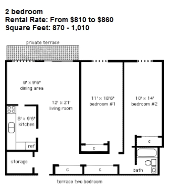 Modelo de apartamento: terrace two bedroom2 Dormitorios, 1 Baño, 870-1010 sq ftNo Disponible![]()