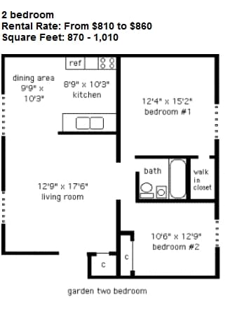 Modelo de apartamento: garden two bedroom2 Dormitorios, 1 Baño, 870-1010 sq ftNo DisponiblePlanosFotos![]()