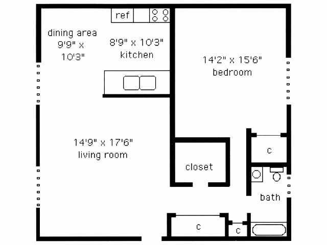 Modelo de apartamento: garden one bedroom1 Dormitorio, 1 Baño, 785-790 sq ftNo Disponible![]()