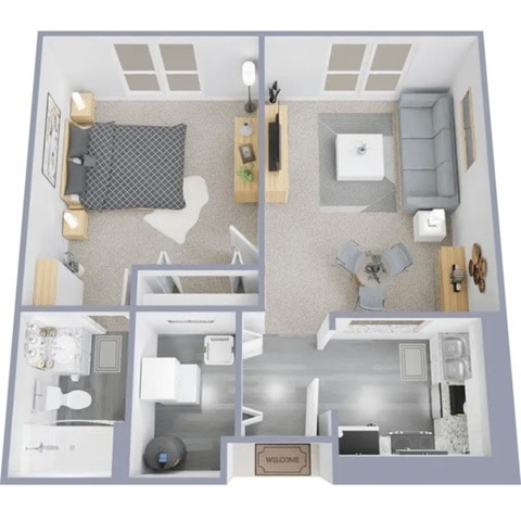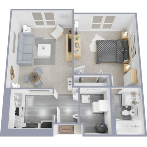 Modelo de apartamento: Creekside Trailway1 Dormitorio, 1 Baño, 695 sq ftNo DisponibleCreekside Trailway - Plano 1 Washington Skyview