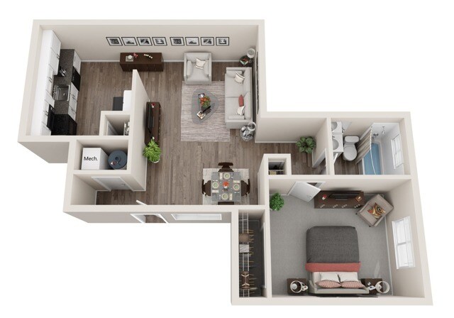 1 Dormitorio, 1 Baño, 625 pies²Disponible AhoraGalería del Modelo
