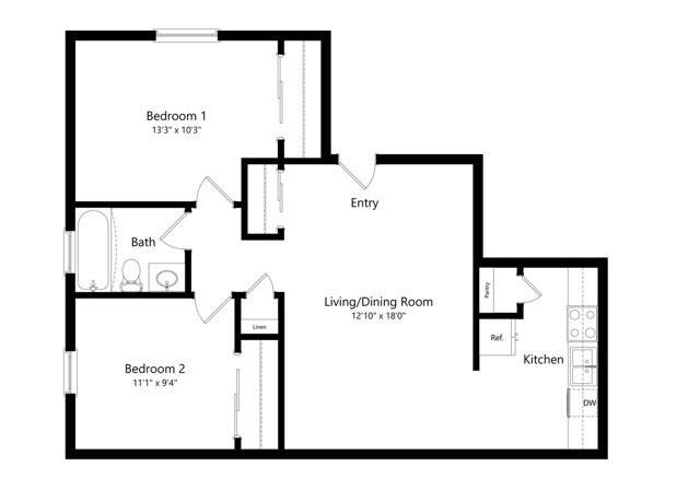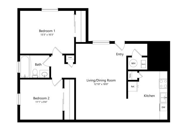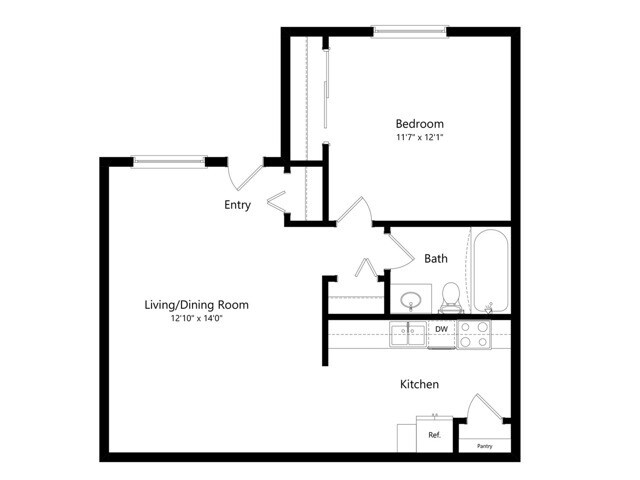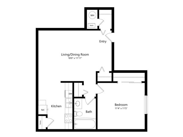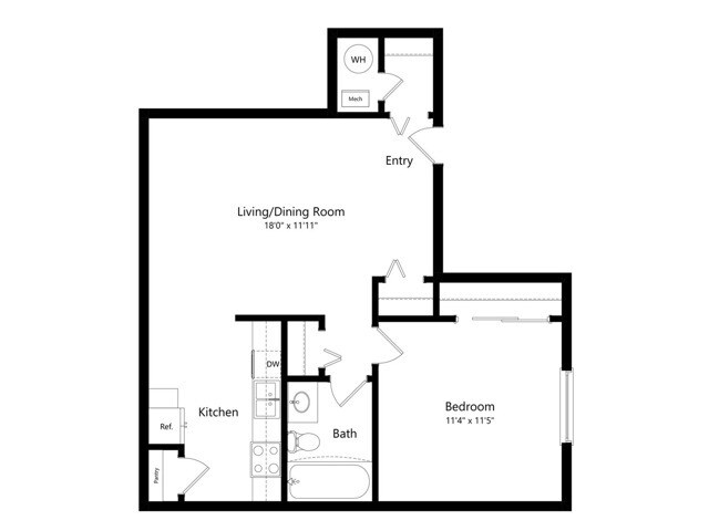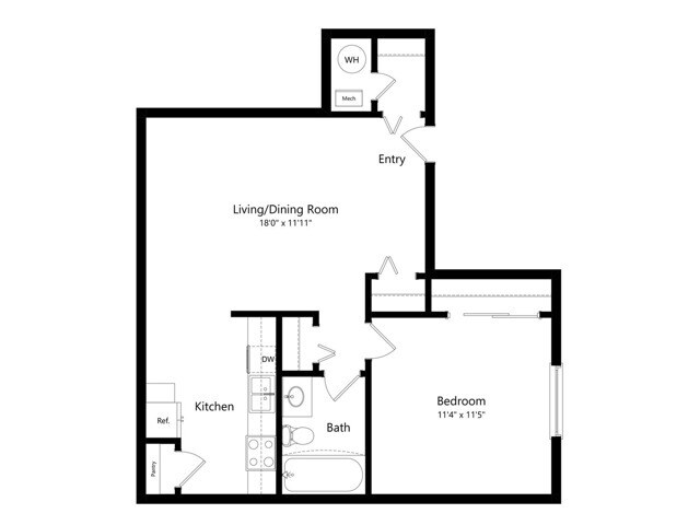 Modelo de apartamento: 1 BR - Medium - OriginalDesde $8701 Dormitorio, 1 Baño, 576 sq ftDisponible Ahora![]()