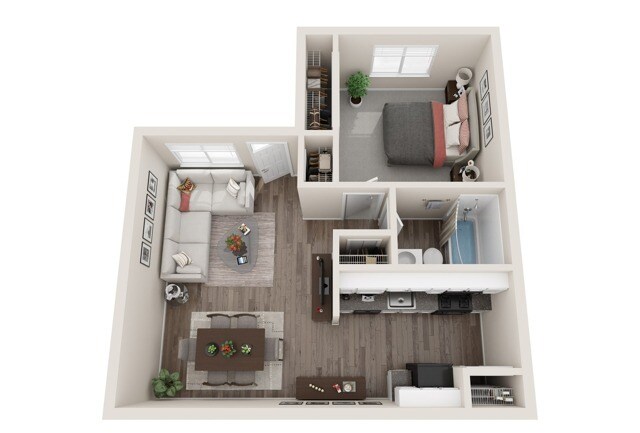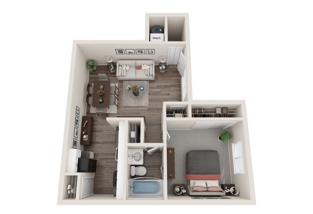 Modelo de apartamento: 1 BR - Medium - UpgradeDesde $8801 Dormitorio, 1 Baño, 576 sq ftDisponible Ahora![]()