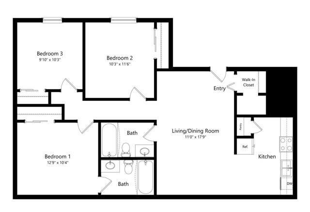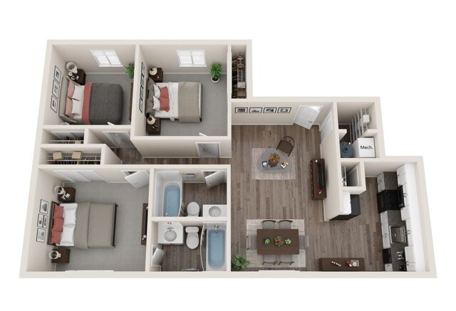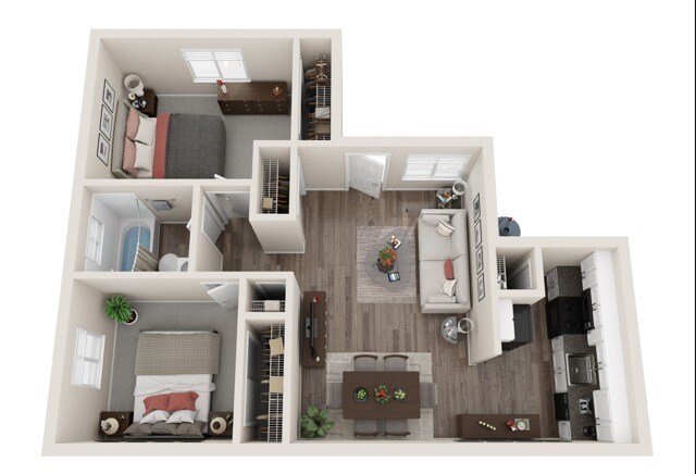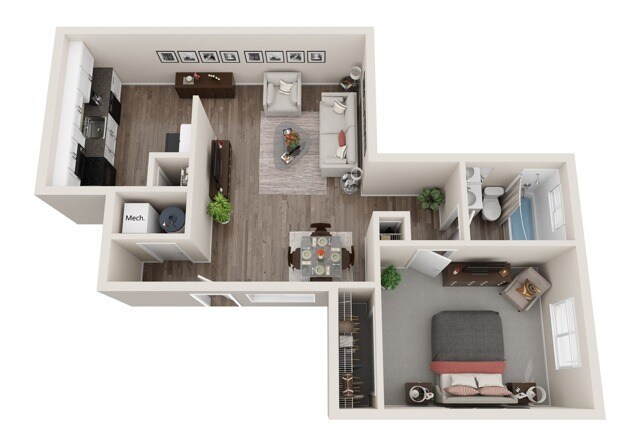 Modelo de apartamento: 1 BR - Large - UpgradeDesde $9101 Dormitorio, 1 Baño, 625 sq ftDisponible Ahora![]()