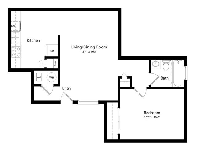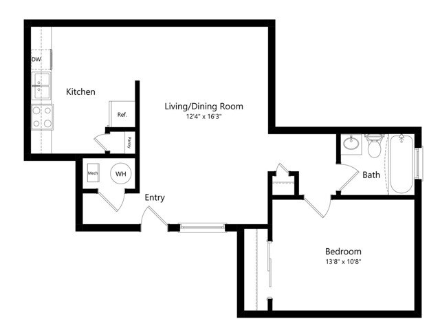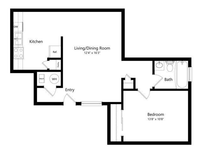 1 Dormitorio, 1 Baño, 576 pies²Disponible AhoraGalería del Modelo