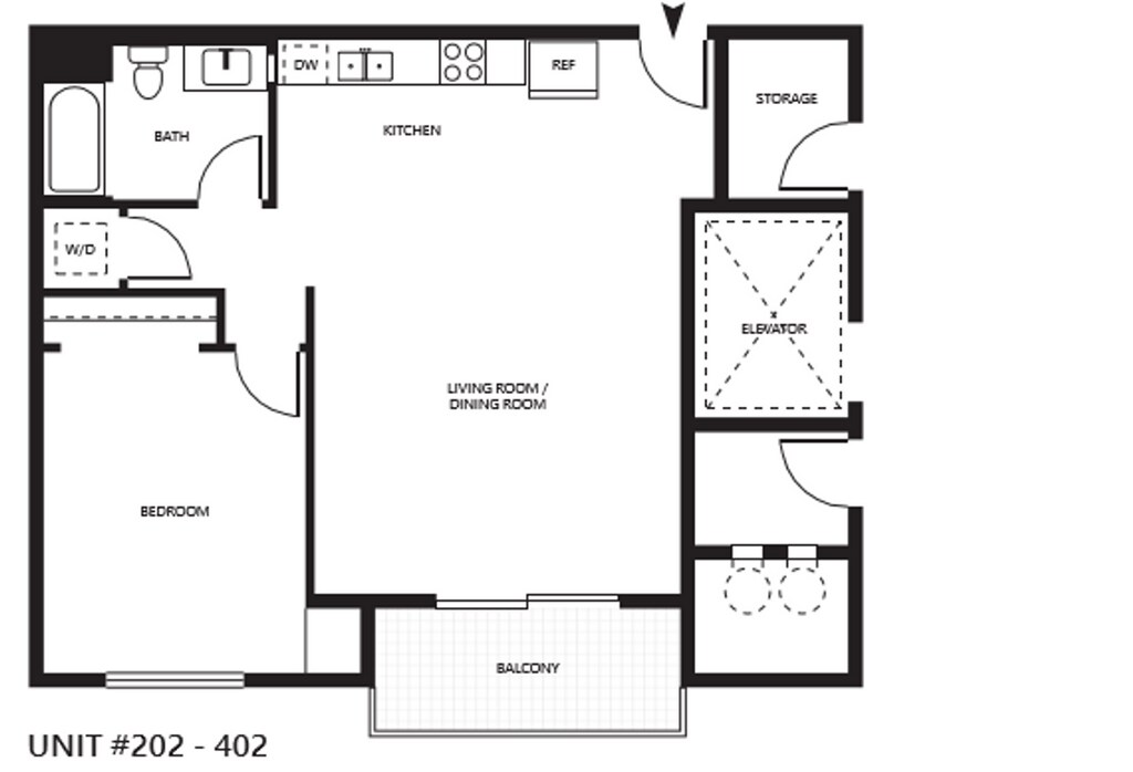 1 BD Floorplan A - Imagen 6 Unidad de apartamento: 207Modelo de apartamento: 1 BD Floorplan A1 Dormitorio, 1 Baño, 670 sq ftDisponible AhoraOne Bedroom