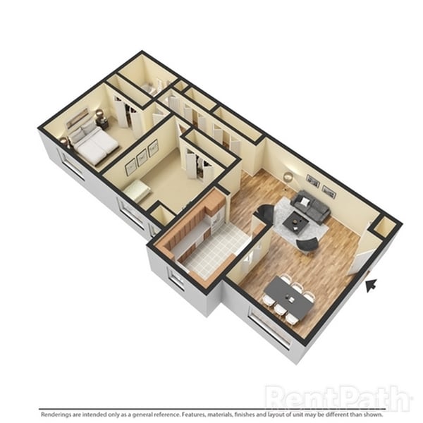 2 Dormitorios, 1 Baño, 1050 pies²Disponible AhoraGalería del Modelo