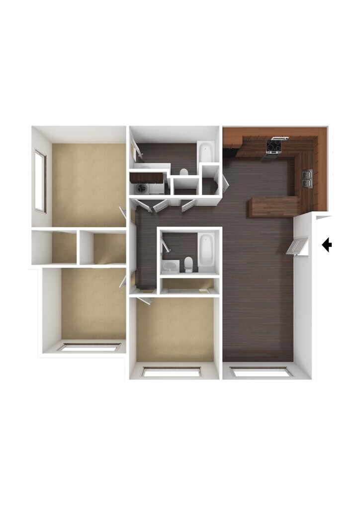 Modelo de apartamento: Three BedroomDesde $1,8353 Dormitorios, 2 Baños, 1306 sq ftDisponible Ahora![]()
