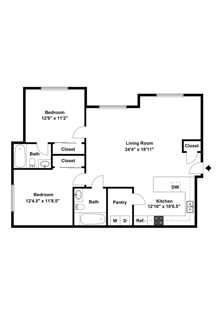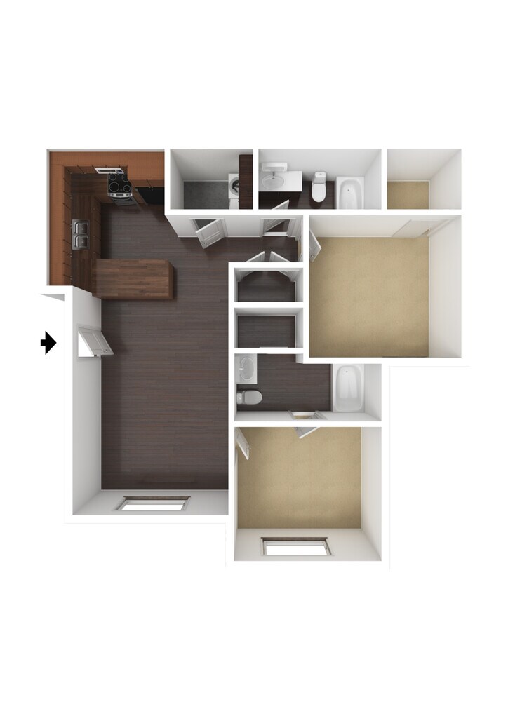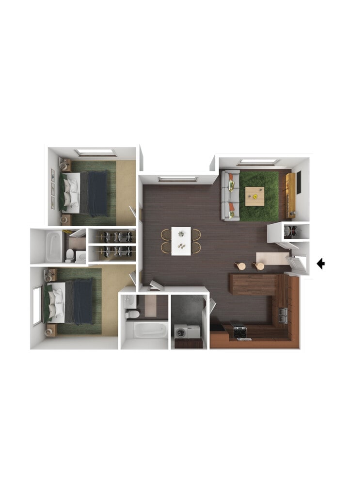 Modelo de apartamento: Two Bedroom - SmallLlame para Precios2 Dormitorios, 2 Baños, 1052 sq ftNo Disponible![]()