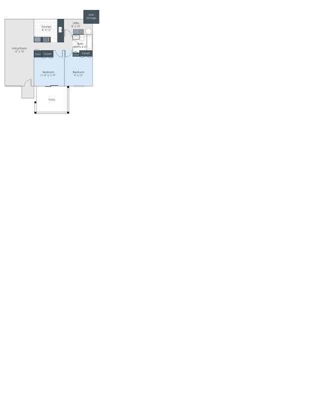 2 Dormitorios, 1 Baño, 864 pies²Galería del Modelo