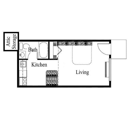 Estudio, 1 Baño, 288 pies²Disponible AhoraGalería del Modelo
