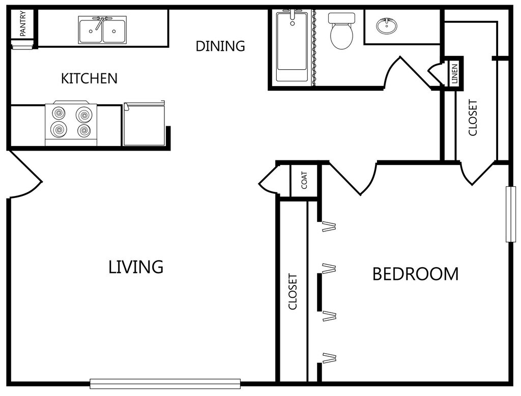 Modelo de apartamento: AHLlame para Precios1 Dormitorio, 1 Baño, 672 sq ftNo DisponibleAH - Plano 1 2 Dormitorios