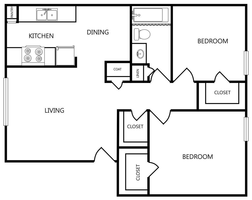 2 Dormitorios, 1 Baño, 974 pies²Disponible AhoraGalería del Modelo