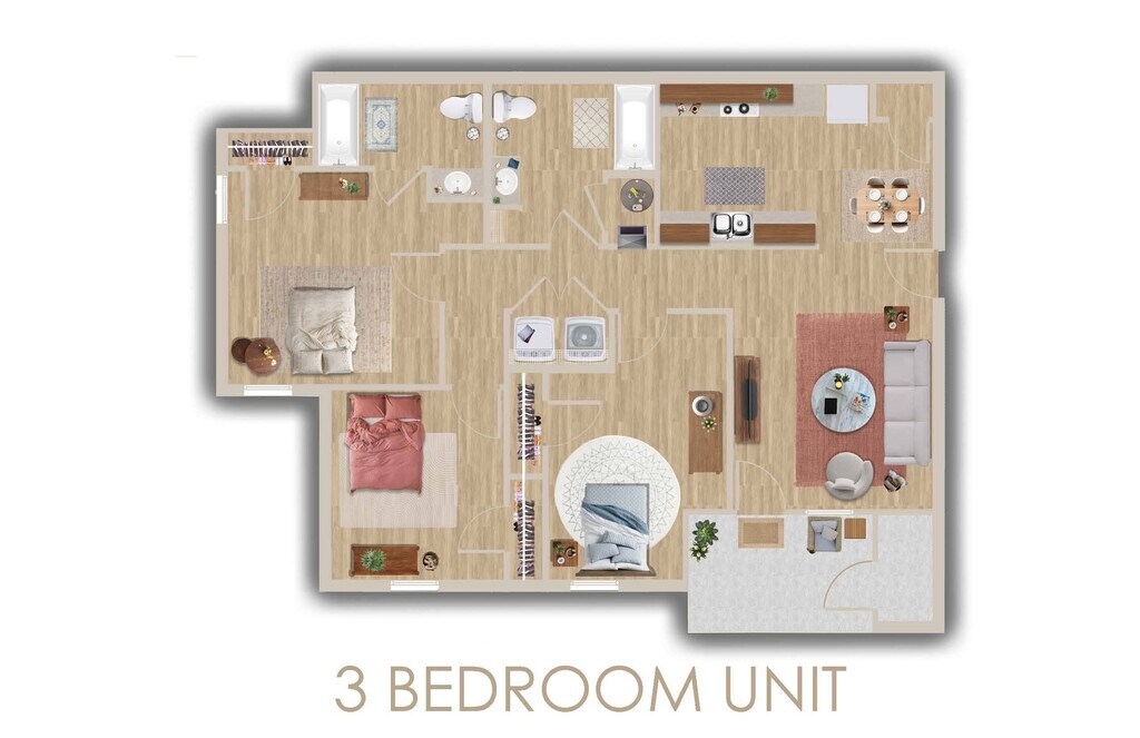 Modelo de apartamento: 3 bdr$1,0853 Dormitorios, 2 Baños, 1171 sq ftDisponible Ahora![]()