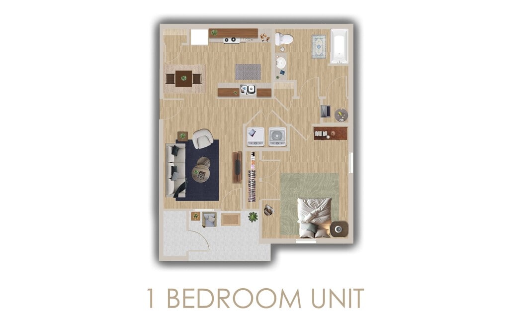 1 Dormitorio, 1 Baño, 755 pies²Galería del Modelo