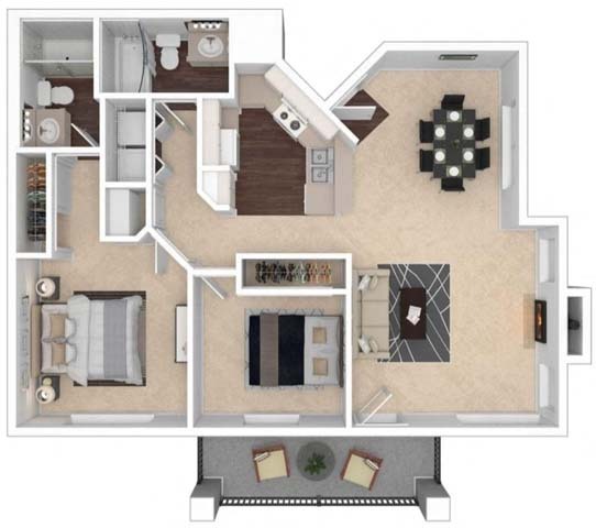 2 Dormitorios, 2 Baños, 1007 pies²Galería del Modelo