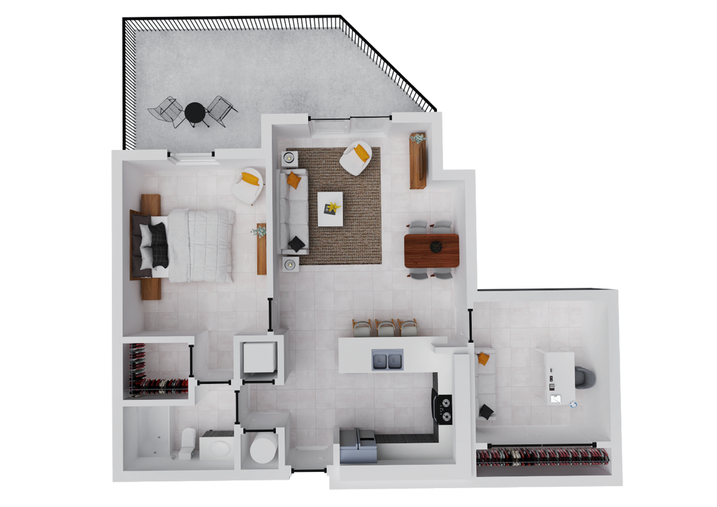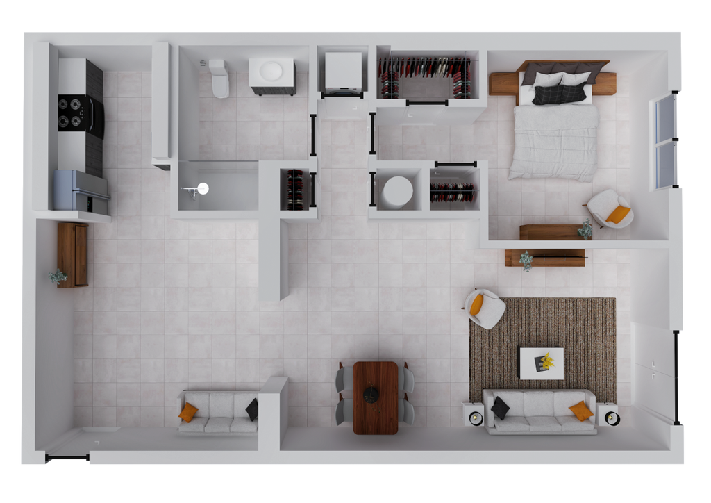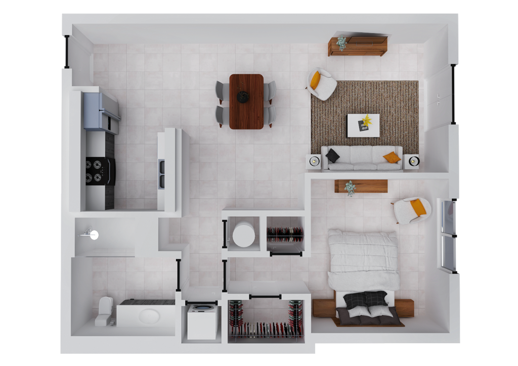 1 Dormitorio, 1 Baño, 673 pies²Disponible AhoraGalería del Modelo