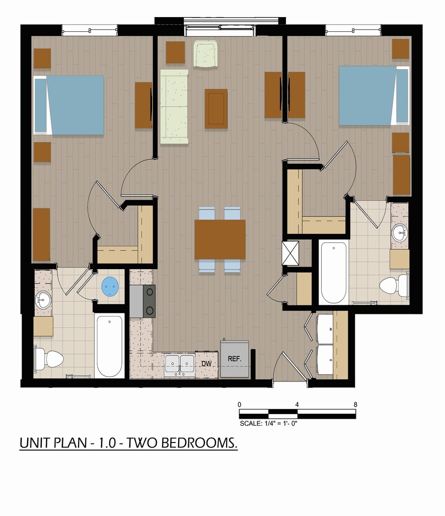 2 Bedroom 2 Bathroom - Plano 1 Unidad de apartamento: 125Modelo de apartamento: 2 Bedroom 2 Bathroom$2,7992 Dormitorios, 2 Baños, 915 sq ftDisponible AhoraUnidad de apartamento: 105Modelo de apartamento: 2 Bedroom 2 Bathroom$2,7992 Dormitorios, 2 Baños, 915 sq ftDisponible Ahora3 Dormitorios