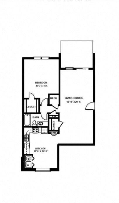 Modelo de apartamento: 1x1B$8701 Dormitorio, 1 Baño, 445 sq ftDisponible Ahora![]()