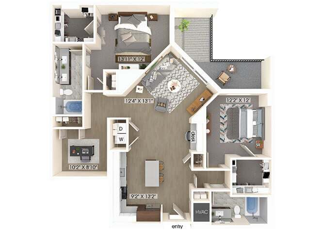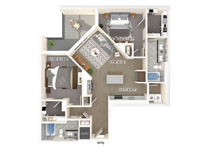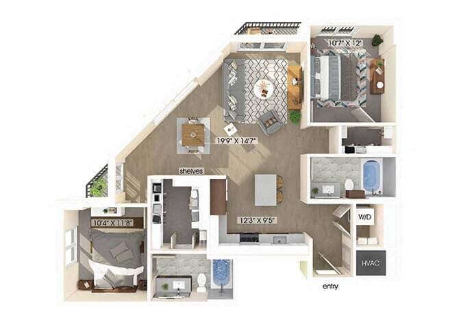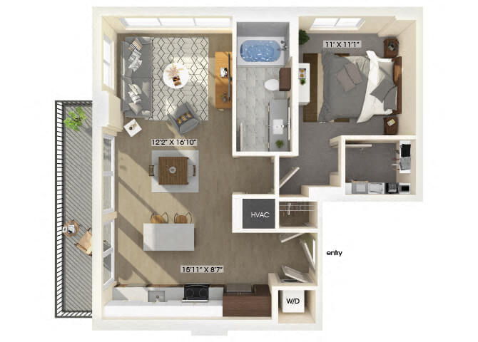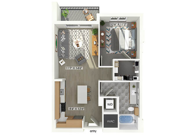 Modelo de apartamento: A5Desde $2,4151 Dormitorio, 1 Baño, 701-726 sq ftDisponible Ahora![]()
