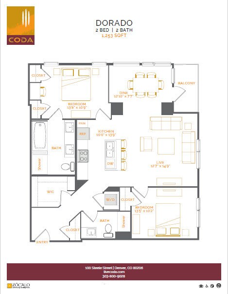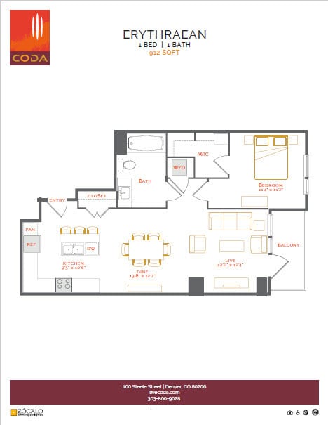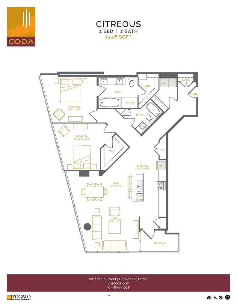 Coda se encuentra en el Barrio Cherry Creek y el código postal 80206 de Denver, CO. Esta comunidad está gestionada profesionalmente por Zocalo Community Development 1
