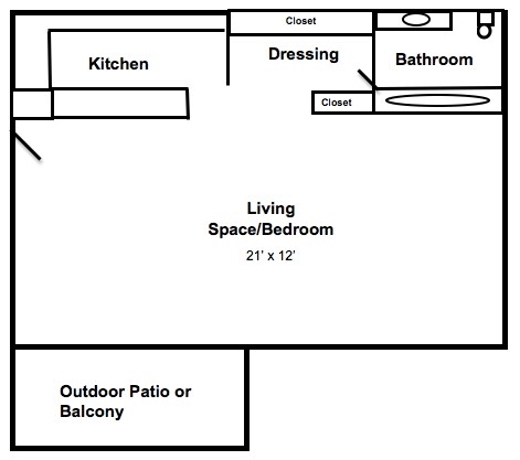Estudio, 1 Baño, 450 pies²Disponible AhoraGalería del Modelo