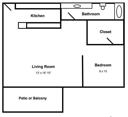 1 Dormitorio, 1 Baño, 550 pies²Disponible AhoraGalería del Modelo