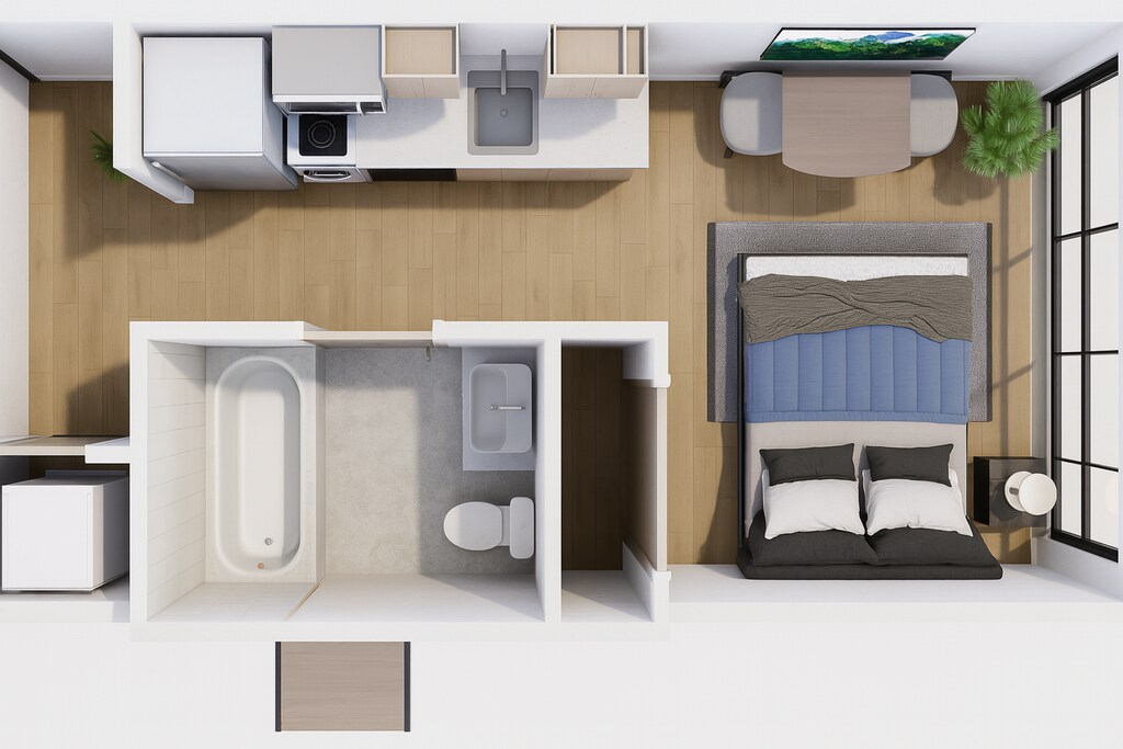 Estudio, 1 Baño, 331 pies²Disponible AhoraGalería del Modelo