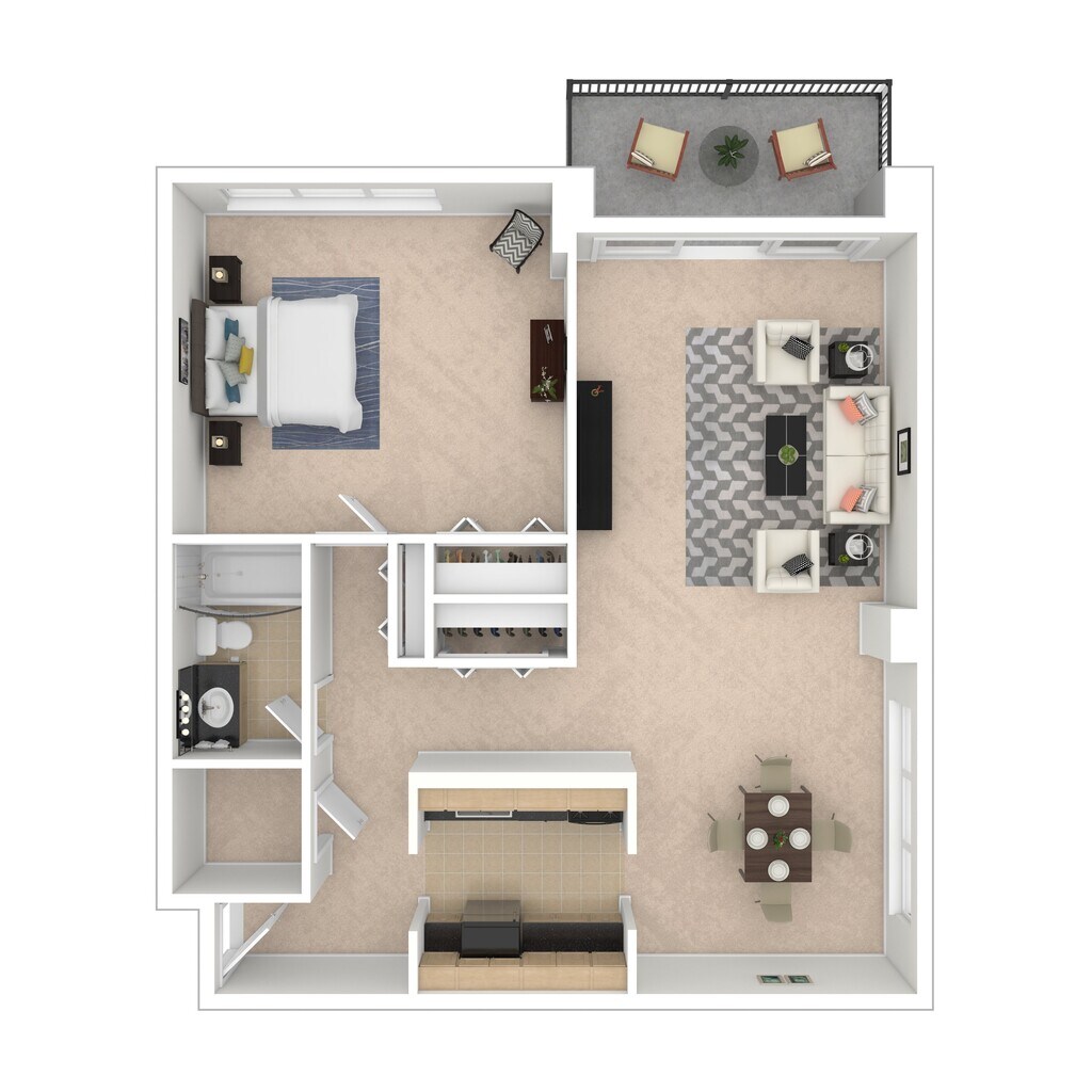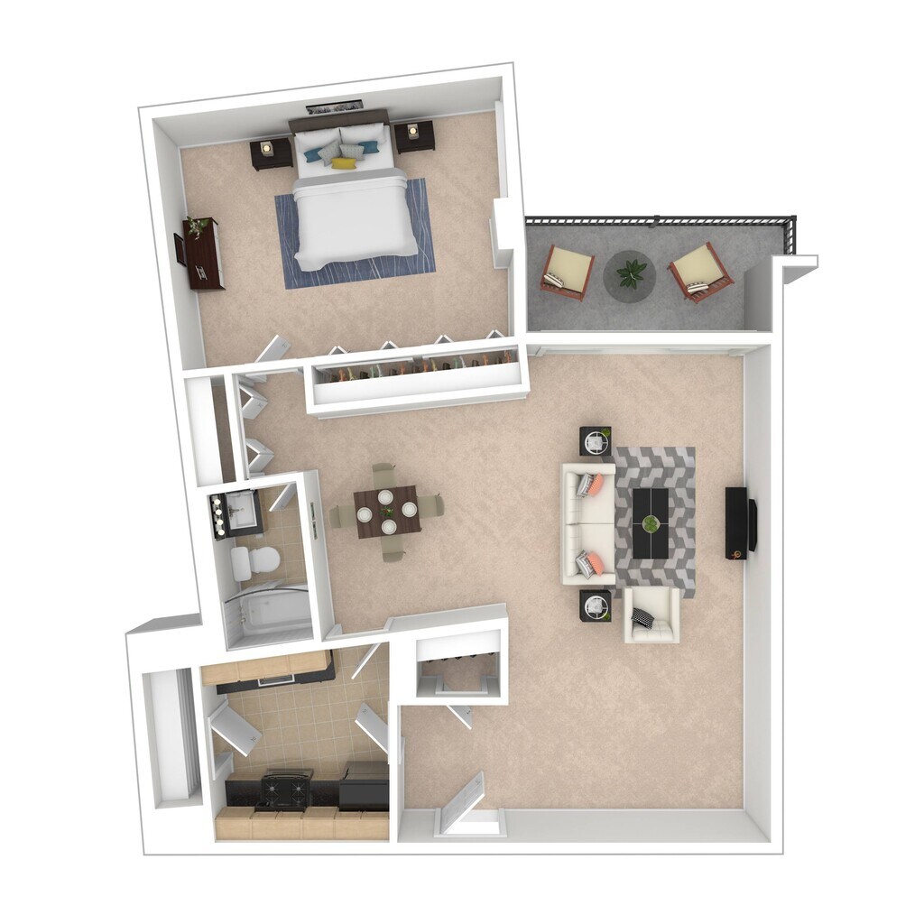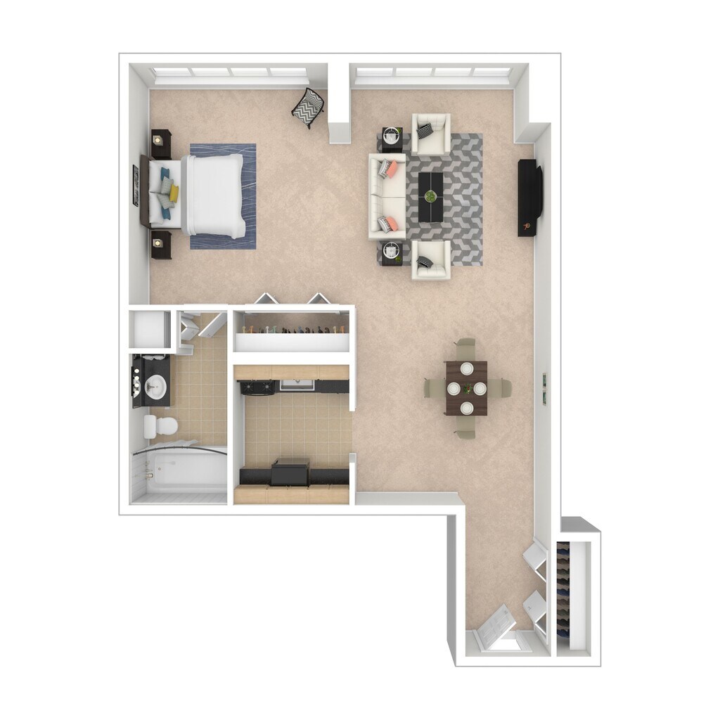 1 Dormitorio, 1 Baño, 752-858 pies²Disponible AhoraGalería del Modelo