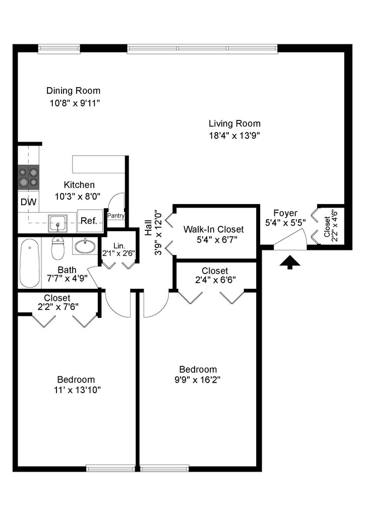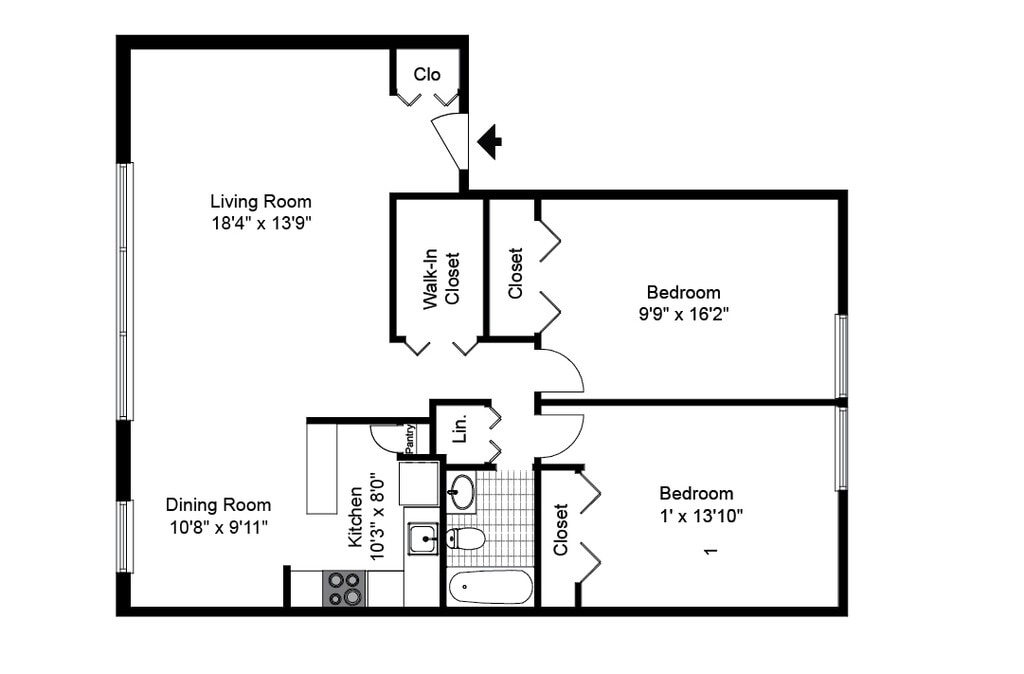 Modelo de apartamento: 2 Bedroom Large$1,5902 Dormitorios, 1 Baño, 1102 sq ftDisponible May 14, 2026![]()