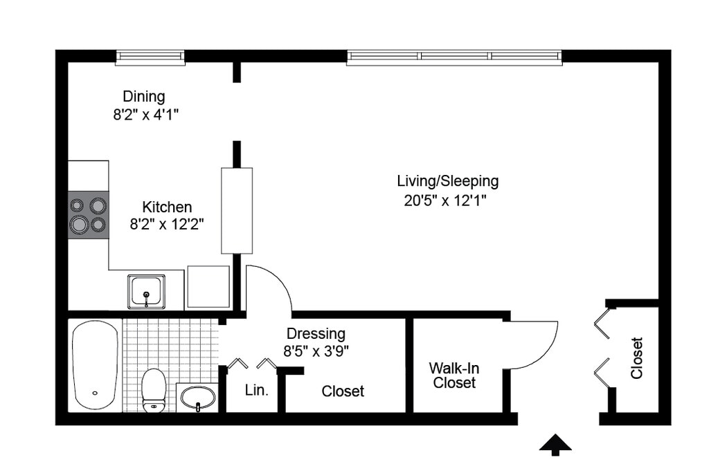 Estudio, 1 Baño, 510 pies²Disponible AhoraGalería del Modelo