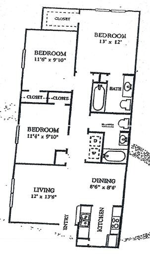 Modelo de apartamento: Three Bed 60%$9993 Dormitorios, 2 Baños, 1034 sq ftNo DisponibleThree Bed 60% - Plano 1 3 Bedroom 2 Bathroom
