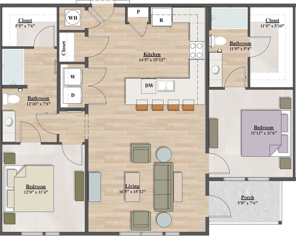Summit - Plano 1 Los planos son representaciones artísticas. Todas las dimensiones son aproximadas. El producto y las especificaciones reales pueden variar en tamaño o detalle. No todas las características están disponibles en cada vivienda en alquiler. Por favor, consulta con un representante para obtener más detalles.