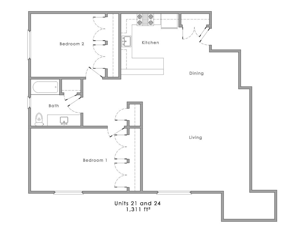 2 Dormitorios, 1 Baño, 1311 pies²El más grandeEsta opción tiene las unidades más grandes para este modeloGalería del Modelo