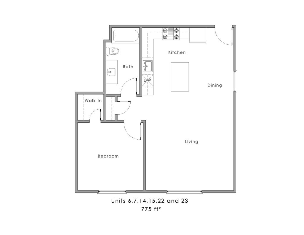 1 Dormitorio, 1 Baño, 775 pies²Galería del Modelo