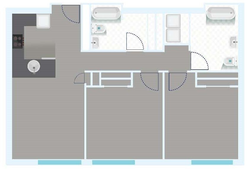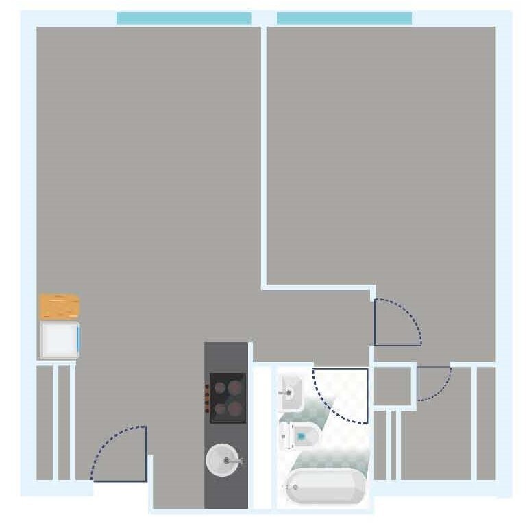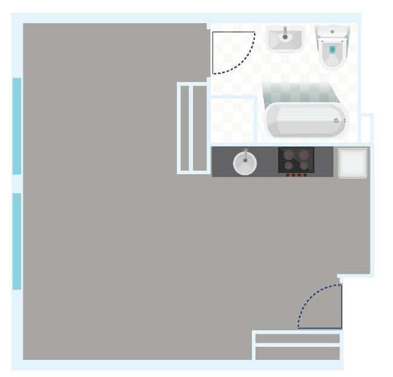 - *Los estudios y los apartamentos de 1 dormitorio tienen su propia cocina y utilizan el