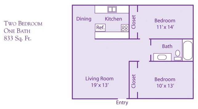 2 Dormitorios, 1 Baño, 833 pies²Detalles de Diponibilidad