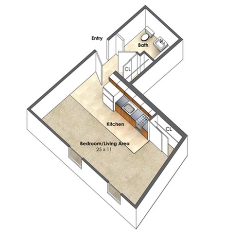 Estudio, 1 Baño, 275 pies²Disponible AhoraGalería del Modelo
