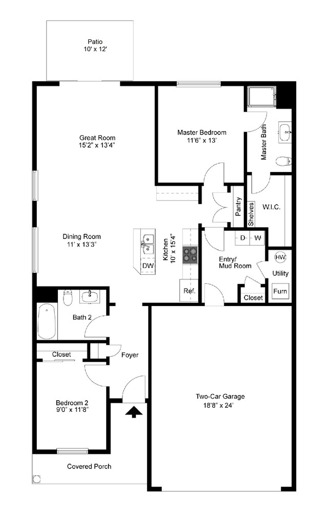 Modelo de apartamento: 2 Bedroom Ranch - Phase IIILlame para Precios2 Dormitorios, 2 Baños, 1260 sq ftNo Disponible2 Bedroom Ranch - Phase III - Plano 1 3 Dormitorios
