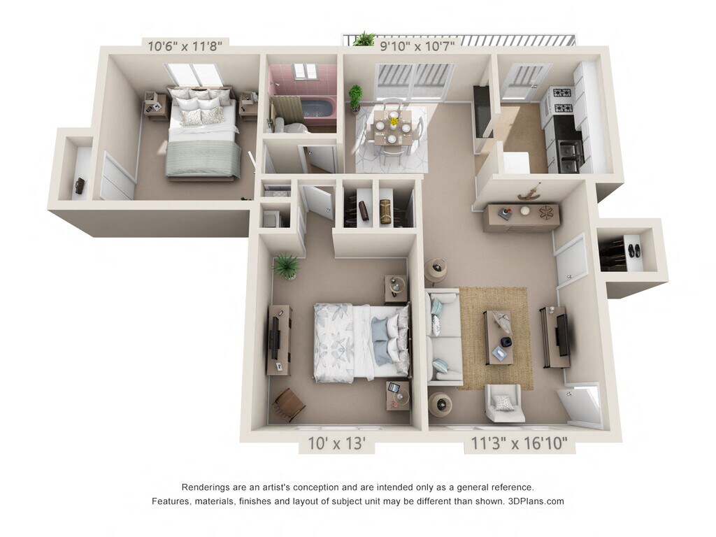 Modelo de apartamento: 1 Bedroom, 1 Bath B (Patio & Balcony)1 Dormitorio, 1 Baño, 631 sq ftDisponible Ahora![]()