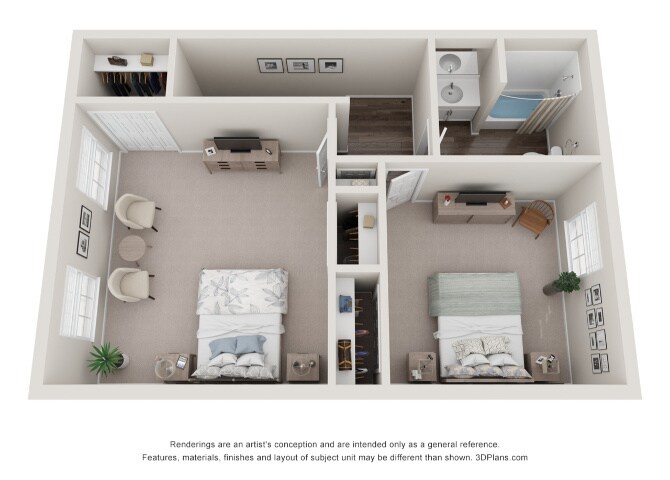Modelo de apartamento: The JamestownLlame para Precios2 Dormitorios, 1.5 Baños, 987 sq ftNo Disponible![]()