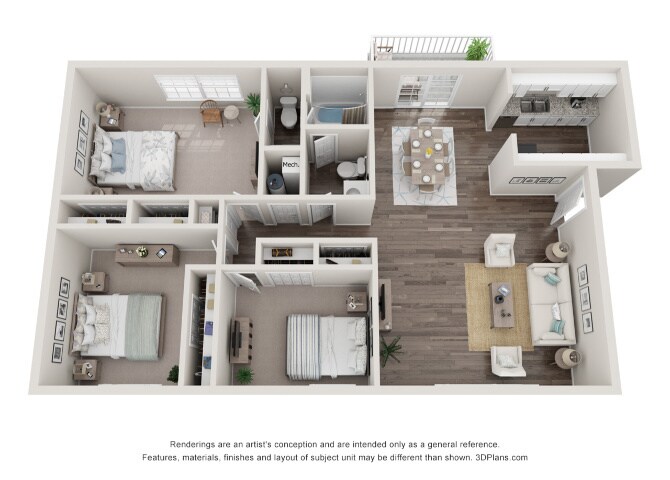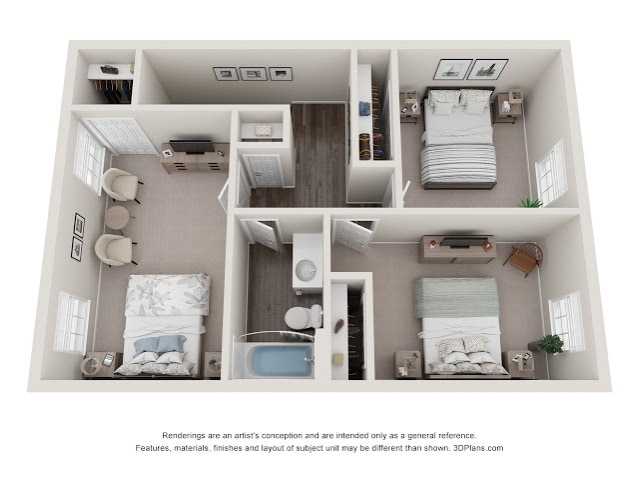 Modelo de apartamento: The MonticelloLlame para Precios3 Dormitorios, 1.5 Baños, 1261 sq ftNo Disponible![]()