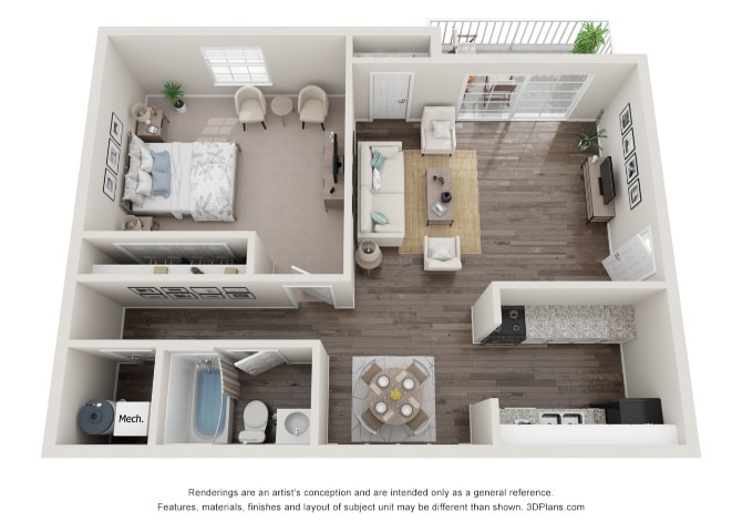 Modelo de apartamento: The PioneerLlame para Precios1 Dormitorio, 1 Baño, 642 sq ftNo Disponible![]()