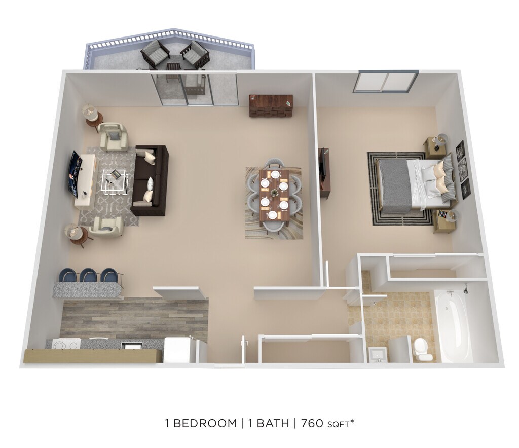 One Bedroom - 760 sqft - Plano 1 ![]()