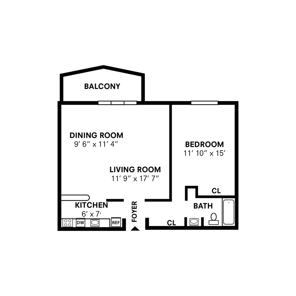 One Bedroom - 580 sqft - Plano 6 ![]()